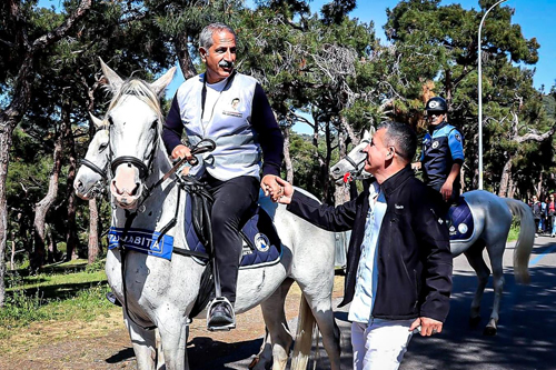 23 Nisan Ulusal Egemenlik ve Çocuk Bayramı’nda, Ay. Yorgi Kilisesi’ne yapılan geleneksel ziyaretlerinin de aynı güne tesadüf etmesi nedeniyle Büyükada yılın en kalabalık gününü yaşıyor. Adalar Belediye Başkanı Ali Ercan Akpolat, Adalar için önemli bu günde sahaya indi. İBB Atlı Zabıta Birimi’ne ait bir atın üzerinde, Adalar’ın sokaklarını, orman yollarını ve meydanlarını adım adım denetleyen Akpolat; vatandaşlarla birebir temas kurdu.