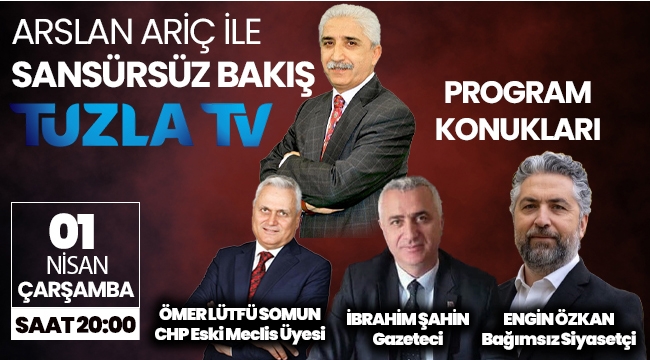 Arslan Ariç ile "Sansürsüz Bakış" program konukları, CHP eski meclis üyesi Ömer Lütfü Somun, Bağımsız siyasetçi Engin Özkan, Gazeteci İbrahim Şahin. 1 Nisan çarşamba saat 20:00'de Tuzla TV'de