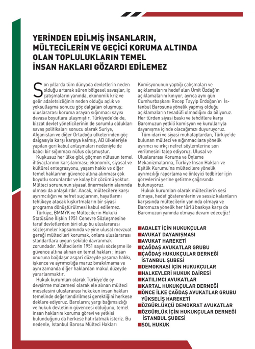 Hukuk Kurumlarından Ortak Basın Açıklaması 13 Hukuk Kurumu “Yerenden edilmiş insanların, mültecilerin ve geçici koruma altına altında olan toplulukların tekel insan hakları göz ardı edilemez” başlığı altında açıklama yayımladı. ABONE OL Dinle ABONE OL Editör: İlk Haber 31 Mayıs 2022 - 13:52 AÇIKLAMA ŞÖYLE: Paylaş Tweetle WhatsApp FACEBOOK YORUMLAR YORUMLAR 0 Yorum adlı kullanıcıya cevap hukuk kurumlarından ortak basın açıklaması Günün Başlıkları 13:15 Pazarcılardan, Sarıyer Belediyesi Önünde Protesto Eylemi 09:38 Maltepe’nin Çifte Ödüllü “Çocuk Tarım Parkı”na AB’den Tam Not Öğretmenlerden O Şoföre Sürpriz Kınık’ın Duruşması Karar İçin Ertelendi Işıl Öykü'nün, Hayatını Kaybettiği Kazanın İlk Duruşması Görüldü Bakan Yerlikaya "İlk Defa Açıklıyorum!" Kaftancıoğlu Hakkında Bir Dava Daha! İmamoğlu’nun Davası Bu Gün Görülecek