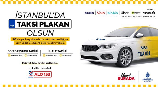 Yedinci etap kapsamında 250 adet Uygulama Bazlı Taksi plakası daha ihale edilecek. İhale, 24 Mart 2026 Salı günü saat 11.00’de Dr. Mimar Kadir Topbaş Gösteri ve Sanat Merkezi’nde, Yenikapı Etkinlik Alanı’nda gerçekleştirilecek.