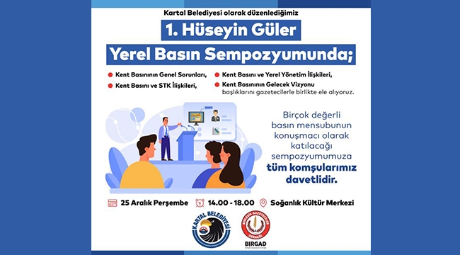 Kartal Belediyesi, geçtiğimiz yıl hayatını kaybeden, Belediye Basın Yayın ve Halkla İlişkiler Müdürü Hüseyin Güler adına 1. Hüseyin Güler Yerel Basın Sempozyumu düzenliyor.