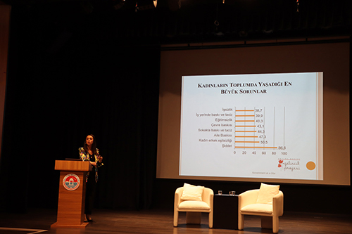 Avukat Sevilay Uğurlu ise şiddetin toplumsal cinsiyet temelli yapısını ve Türkiye’de şiddetle mücadelede karşılaşılan zorluklarını aktardı. Toplumsal cinsiyet eşitliğinin, şiddeti önlemede bir temel olduğunu vurgulayan Uğurlu, “Toplumsal cinsiyet eşitliği karar verme, seçme, fırsatları kullanma, kaynakların ayrılması, kullanılması ve hizmetlerin elde edilmesinde bireye cinsiyeti nedeniyle ayrımcılık yapılmamasıdır. Kadınların ve erkeklerin yaptıkları işlerin farklılaşması, farklı işlere farklı değerlerin verilmesi, işler arasında oluşan statü hiyerarşisi cinsiyet eşitsizliğinin de temelidir. Bu durum toplumsal kaynaklara erişimi ve bu kaynakların bölüşümünü de etkiler. Toplumsal cinsiyet eşitliği yalnızca temel bir insan hakkı değil aynı zamanda barışçıl, refah seviyesi yüksek ve sürdürülebilir bir dünya için gerekli bir temeldir.” şeklinde konuştu.