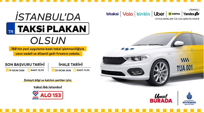İstanbul Büyükşehir Belediyesi (İBB), şehir içi ulaşımda konfor, güvenlik ve erişilebilirliği artırmak amacıyla hayata geçirdiği Uygulama Bazlı Taksi sistemiyle İstanbul’da yeni bir dönemi başlatıyor. Yalnızca dijital uygulama üzerinden hizmet verecek yeni nesil taksi modeli için altıncı ihale süreci devam ederken, başvurular 19 Ocak 2026 Pazartesi günü saat 12.00’ye kadar yapılabilecek. İhale ise 20 Ocak 2026 Salı günü saat 11.00’de Yenikapı’daki Dr. Mimar Kadir TOPBAŞ Gösteri ve Sanat Merkezi’nde gerçekleştirilecek.