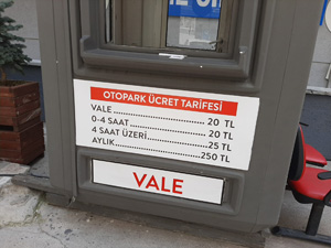 Ancak, uygulamada sözleşmenin aksine farklı ücret alındığı ortaya çıktı. Otopark’ın girişinde ki “Otopark Ücret Tarifesi” yazan tabelada, Vale..20 TL, 0-4 Saat 20 TL, 4-Saat üzeri 25 TL, Aylık 250 TL yazıyor. Tamamen sözleşmeye aykırı olduğu görülüyor!